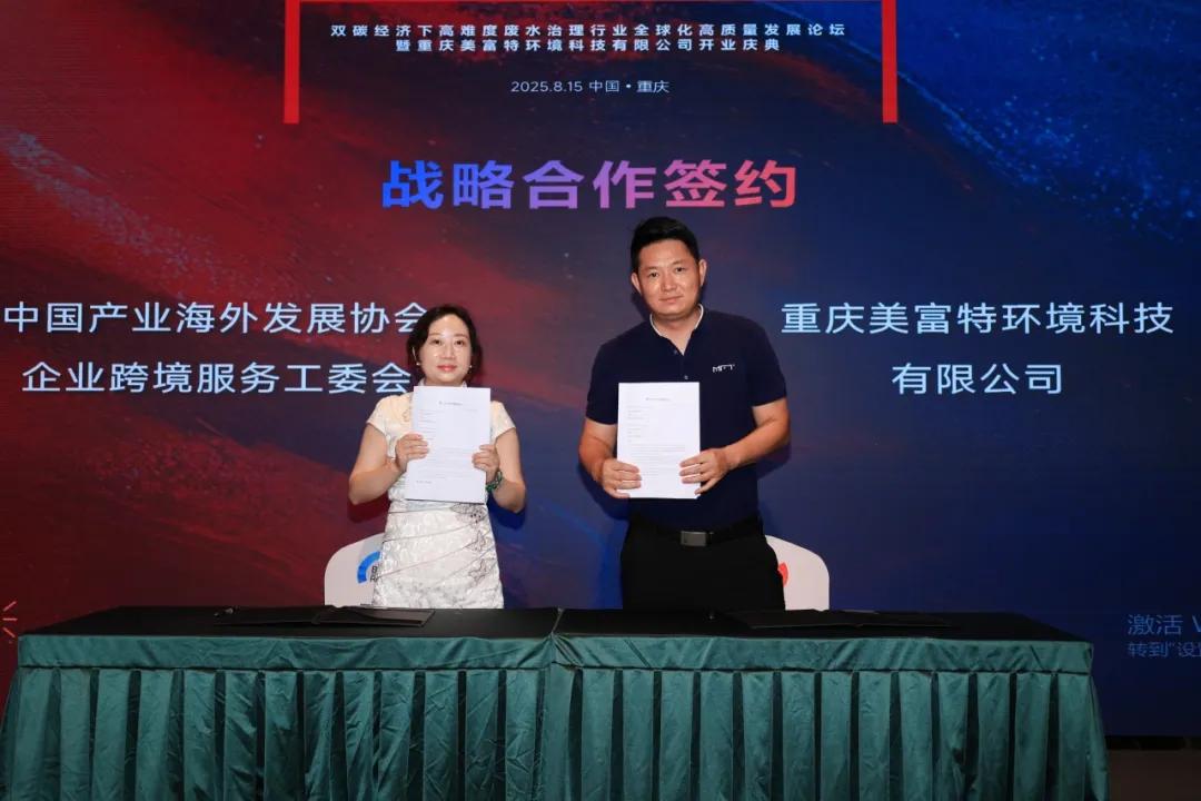 2025年8月15日,“双碳经济下高难度废水治理行业高质量发展论坛暨重庆美富特公司开业庆典”在重庆市人民大礼堂隆重举行。该活动由中国产业海外发展协会企业跨境服务工作委员会主办,不仅标志着美富特环保集团与重庆阳正环保强强联合携手共建的重庆美富特公司正式启航,更成为成渝两地环保产业深度协同、共促区域经济绿色发展的重要里程碑。作为中海协“新出海2035计划”在环保领域重要实践,重庆美富特将依托协会全球资源,以西南为支点链接海外园区与服务中心,从区域技术标杆成长为全球产业链核心力量。
